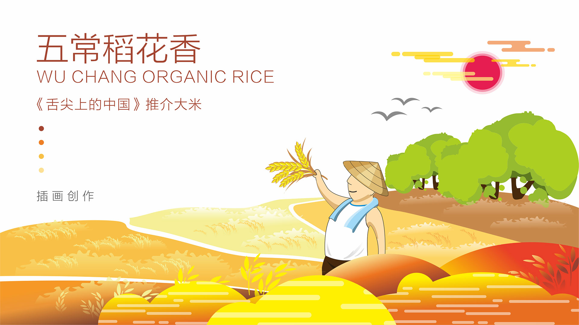 三采用符合目標(biāo)人群喜歡的手繪插畫(huà)表達(dá)五常大米生長(zhǎng)的場(chǎng)景,體現(xiàn)出生態(tài)、自然和豐收的喜悅。