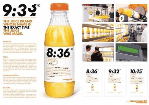 這一點很多人不知道,能做到這一點的包裝設(shè)計或者設(shè)計師并不多見,會說話其實就是指消費者可以很簡單的從產(chǎn)品包裝上獲得他們想要了解的信息。下面這款橙汁的包裝設(shè)計,直接把生產(chǎn)時間作為主要元素印在包裝上,具體到幾時幾分,非常簡單粗暴的告訴消費者這瓶橙汁到底有多新鮮,這個設(shè)計也讓該品牌的橙汁銷量大增,這才是真正的牛創(chuàng)意。