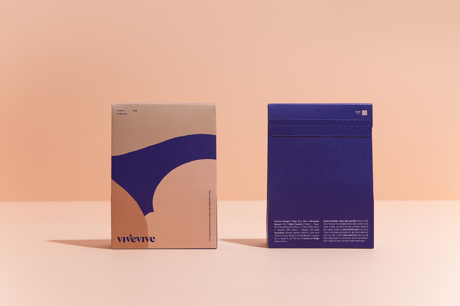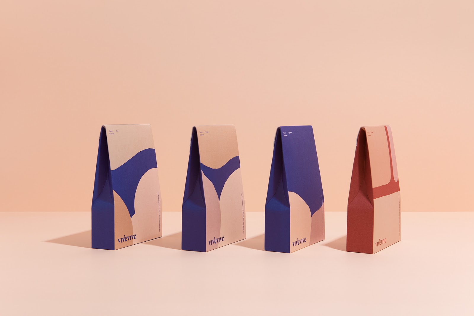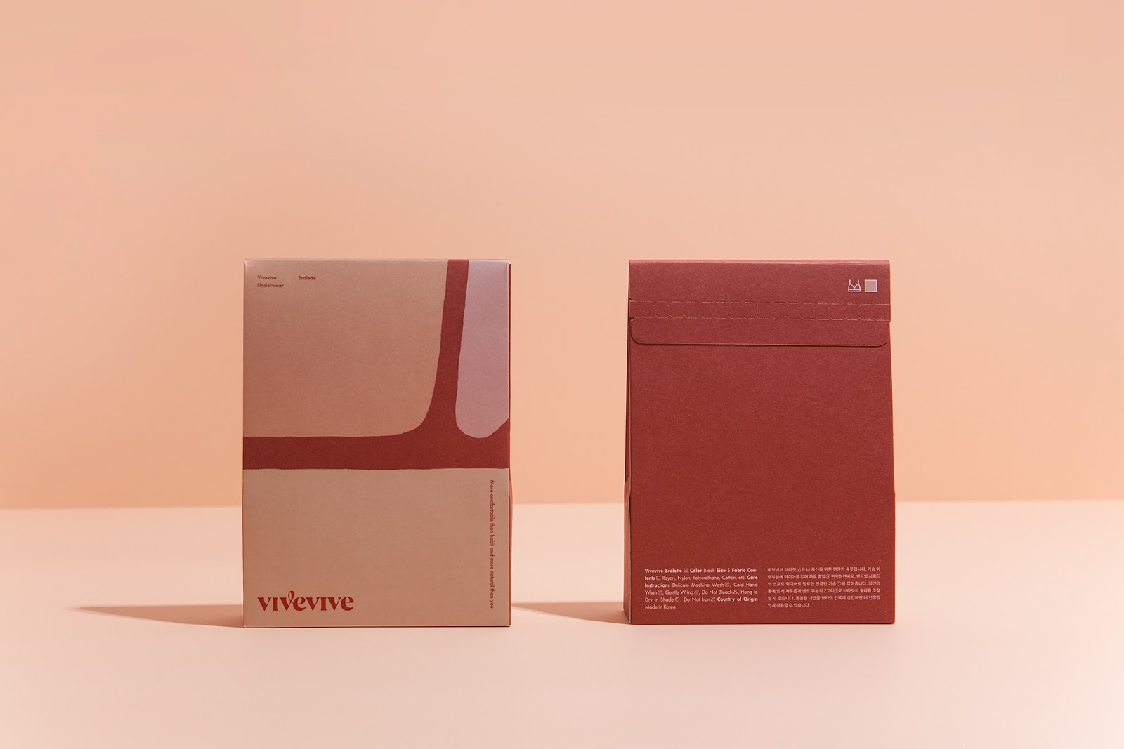 來自于韓國的CFC設(shè)計工作室為女性內(nèi)衣品牌vivevive做的視覺識別和包裝設(shè)計。最自然的身體是美的,CFC用抽象的手法描繪了女性美麗的身體曲線,也用此詮釋著身體最舒適的狀態(tài)。通過對比的大面積色塊拼接來描繪身體局部,很好地抓住了女性身體曲線的特征。又用了膚色的暗淺來描繪局部的光線變化。雖然非常抽象,但能引人聯(lián)想,識別度很高。