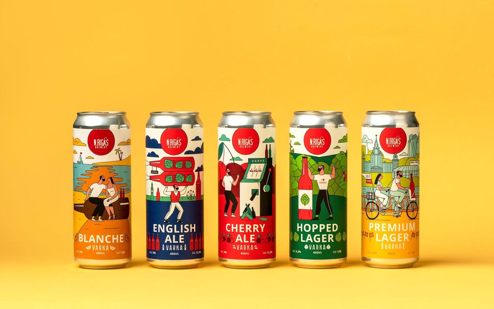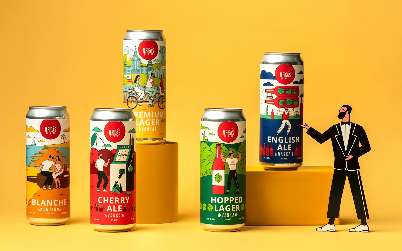 這是VARKA啤酒包裝設(shè)計(jì),使用當(dāng)下比較流行的插畫形式,描繪了商品在生活中的使用場(chǎng)景,用多種艷麗的顏色烘托出正向、多姿多彩的氛圍。