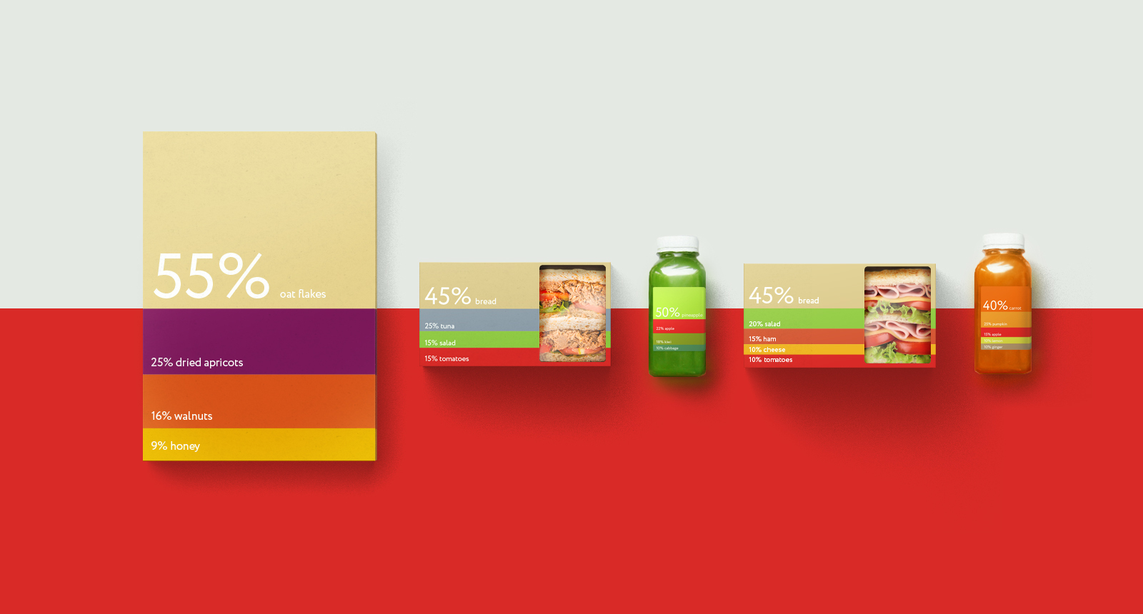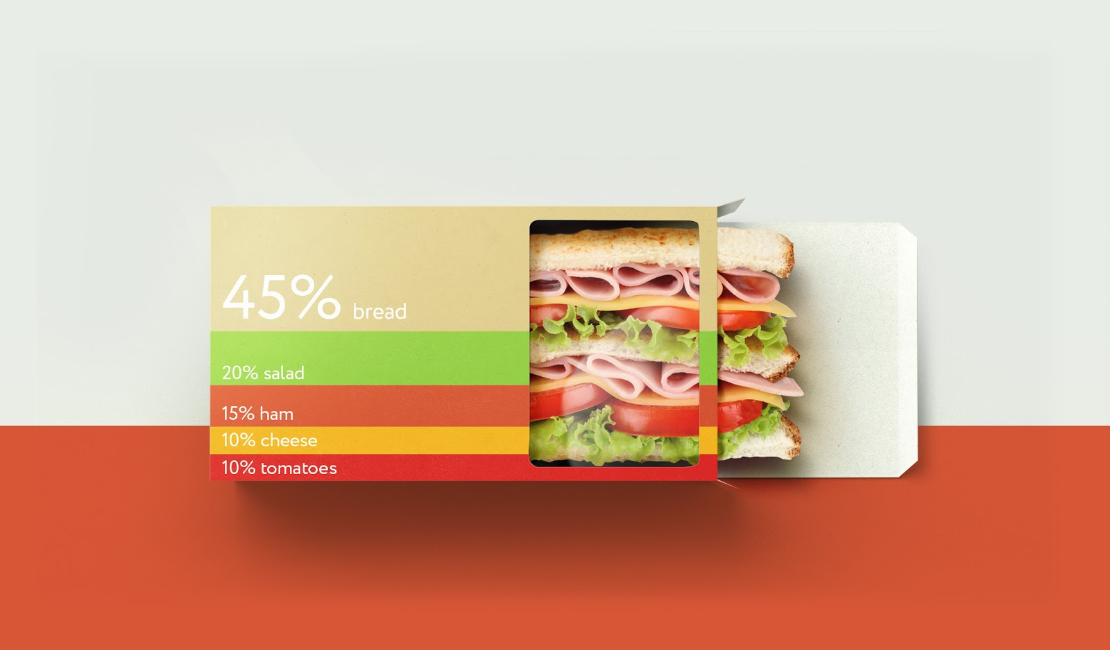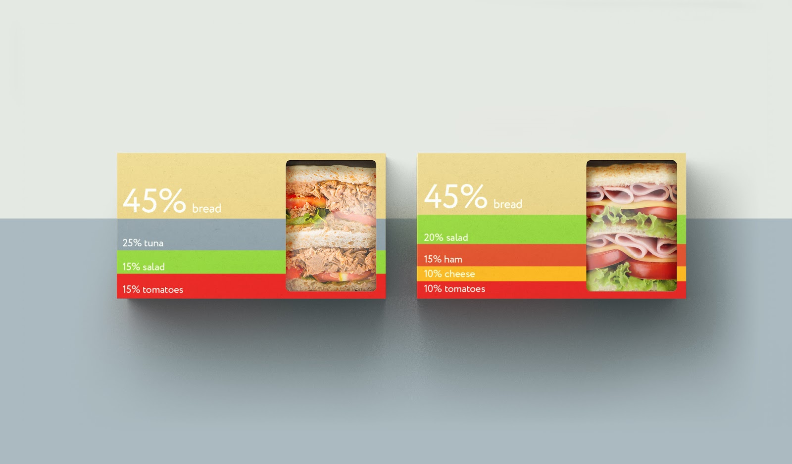 整體設計非常簡潔,大膽亮麗的色彩,在包裝上還標注了三明治中的營養(yǎng)成分,留白的“視覺窗口”將產(chǎn)品的原料展現(xiàn)在消費者眼前,給消費者創(chuàng)建了很好的觸覺體驗,使產(chǎn)品更加真材實料,給人留下一種奇特的心理感受。