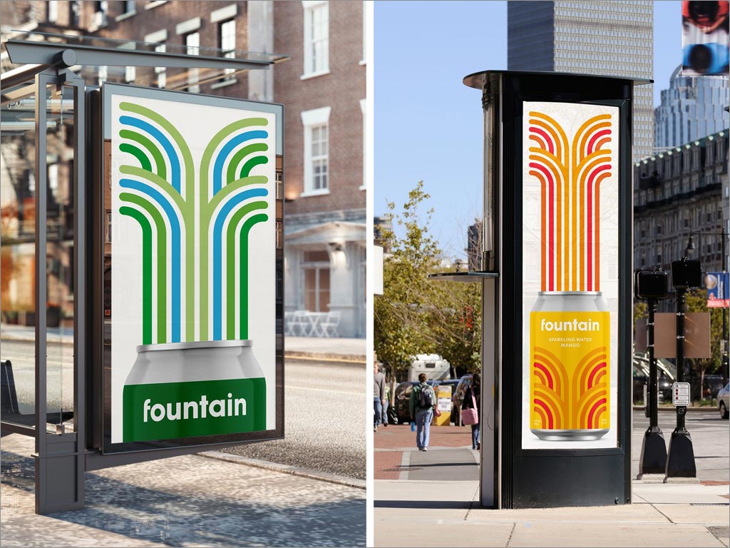 五角星設(shè)計(jì)公司作為Fountain品牌logo和包裝設(shè)計(jì)服務(wù)商,以幫助他們的品牌在一個(gè)已經(jīng)很擁擠的空間中脫穎而出。五角星設(shè)計(jì)公司決定出奇制勝,將此款飲料定位在好玩、有趣、活力四射的角度,采用彩色的方法,以圓形和有機(jī)的線性圖案作為logo設(shè)計(jì)的基礎(chǔ),該設(shè)計(jì)從包含蘇打水的天然成分以及品牌名稱中獲得靈感,創(chuàng)造了虛擬噴泉的形象,因?yàn)槊總€(gè)人都有打開易拉罐被噴灑的時(shí)候,就像他的品牌符號(hào)一樣,深入人心。