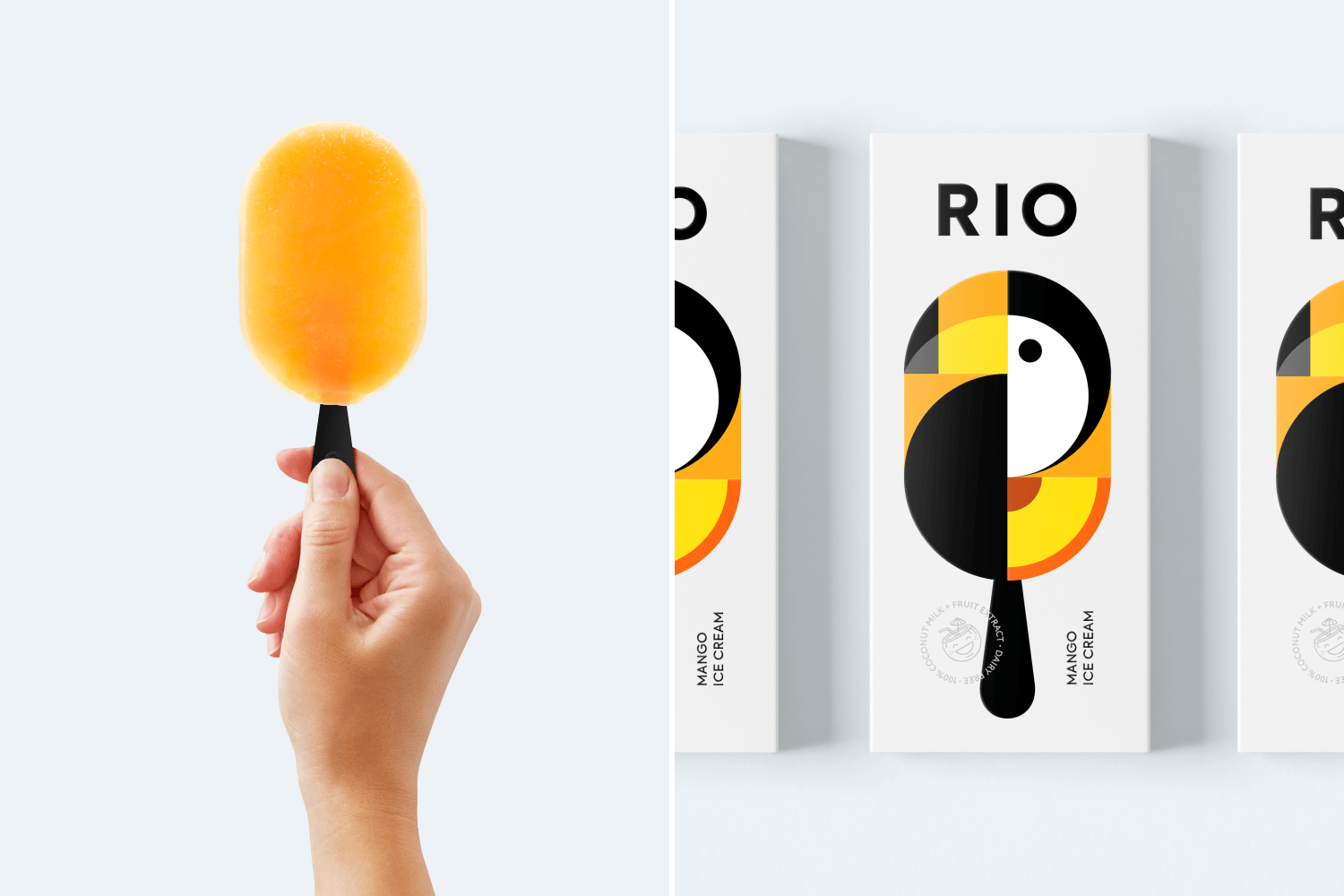 冰淇淋概念的靈感來自世界上色彩最豐富的城市之一里約熱內(nèi)盧。RIO冰淇淋反映了這座城市的主要特征明亮美味和陽光明媚。美麗的巨嘴鳥鳥也使我們想起了里約熱內(nèi)盧的主要吉祥物。包裝的主要思想是傳達(dá)其美味的味道及其天然成分,簡單的圖形成獨(dú)特的識(shí)別符號(hào),加速人們的聯(lián)想,使人印象深刻。