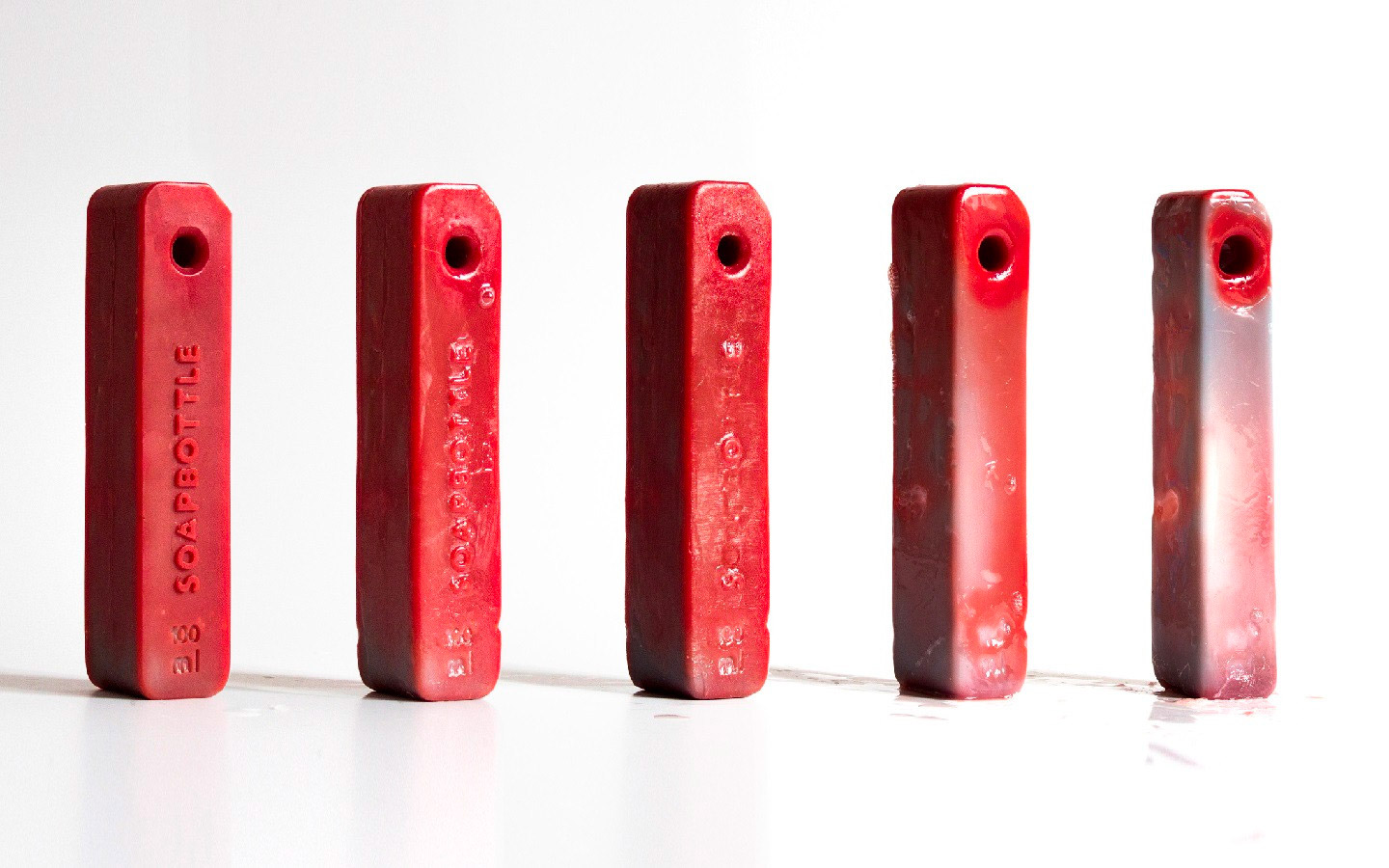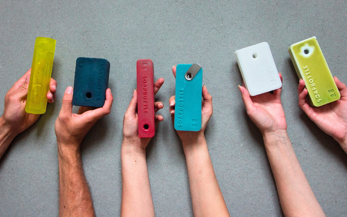 SOAPBOTTLE 在設(shè)計(jì)中加入了無包裝化妝品的概念,具體方式是將產(chǎn)品本身成為其自身的包裝。采用天然材料制作的香皂具有可生物降解的特性,因此可以完全避免垃圾產(chǎn)生。它外部的包裝由肥皂制成,隨著時(shí)間的推移會(huì)逐漸降解。與傳統(tǒng)的塑料容器不同,它不會(huì)留下任何廢物,也不會(huì)導(dǎo)致任何環(huán)境污染。每個(gè)瓶子的頂部都有一個(gè)孔可讓細(xì)繩穿過,從而提供了簡(jiǎn)單且可重復(fù)使用的存儲(chǔ)方法。當(dāng)液體用完后,剩下的部分還可以當(dāng)作洗手香皂使用,或是再次加工成其它洗滌劑或清潔劑使用。